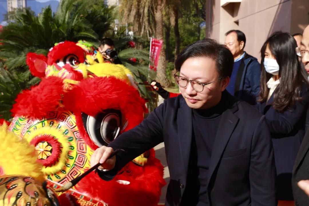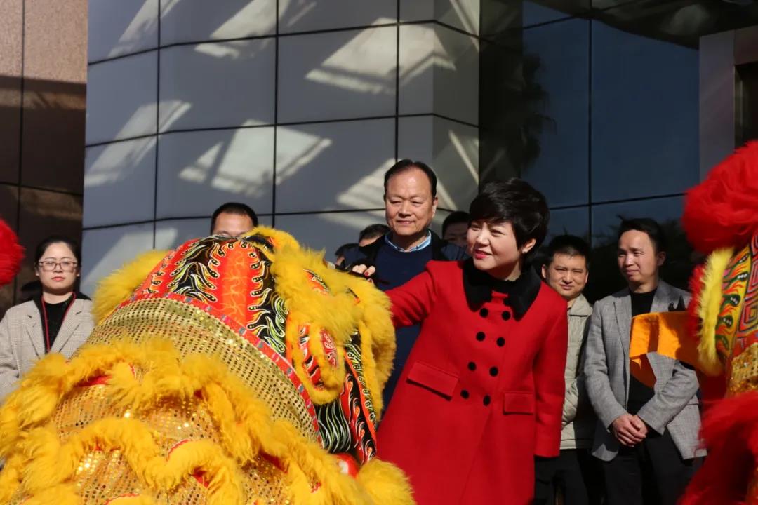 上午8点58分,在康奈集团办公大楼前,百面道旗迎风招展,康奈喷泉伴乐欢腾,喜庆灯笼高高悬挂,花团锦簇春景怒放。在嘹亮的开门红音乐声中,郑莱毅总经理和郑莱莉副董事长共同为醒狮点睛,醒狮斗舞,庆贺开工大吉。随后,郑莱毅总经理和郑莱莉副董事长与全国营销精英、管理干部代表合影留念。