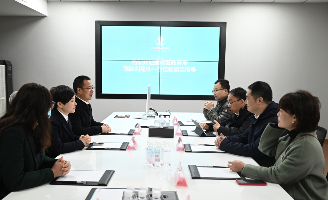 2月3日,温州市鹿城区教育局局长陈胜利,鹿城区经信局副局长梅争艳和鹿城区教育局党委委员、普教科科长邵文立等莅临康奈调研指导,康奈集团总裁郑莱莉热情接待。