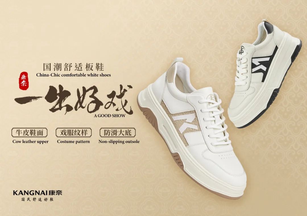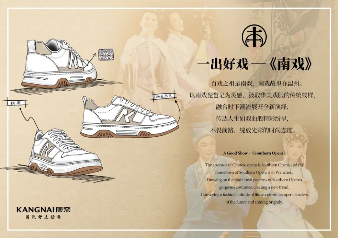 在加达展会上,康奈不仅展示了标志性经典鞋款“大利莱系列”“固特异工艺系列”产品,还带来了南戏IP衍生产品“一出好戏”主题鞋品。