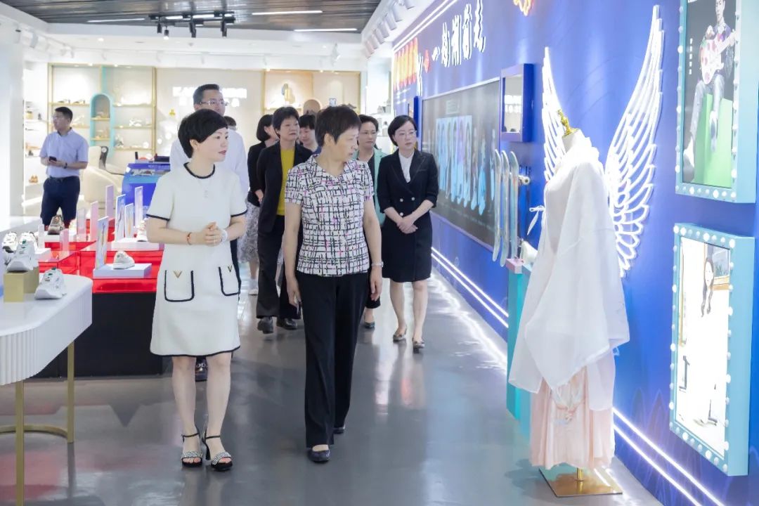 首先,郑莱莉向何主席一行重点汇报了康奈集团妇联在集团党委和各级妇联的正确领导下,围绕中心,服务大局,助力发展以及开展巾帼共富的行动等。康奈集团现有女员工占公司员工总数的61%,真正顶起康奈发展“半边天”。在二十大精神指引下,康奈妇联聚焦企业高质量发展,聚焦共同富裕,聚焦妇女儿童权益,聚焦女性成长成才。一行人还参观了康奈舒适体验馆、康奈定制馆。参观过程中,郑莱莉详细介绍了康奈集团企业发展现状、妇女工作情况、数字化改革成果以及康奈妇联贯彻新发展理念,通过发挥妇联组织在服务女性、服务发展和服务社会中发挥的实质作用,让企业实现了高质量的发展,让女职工越来越幸福,成为新领域示范妇联组织。随后,何主席一行前往员工活动中心参观了康奈正在举办的第十届小候鸟夏令营活动。郑莱莉汇报说,康奈小候鸟夏令营活动,在上级妇联、政府部门和社会各界的关心支持下,已成功举办十届,共计超1200多名康奈员工子女参加了夏令营活动,这不仅解决了女性员工暑期带孩子的问题,还能让小朋友在这里度过一个安全、快乐、有意义的暑假,丰富假期生活,同时收获成长和快乐的回忆。康奈妇联还带头成立了“康奈巾帼共富工坊”、康奈“家”基金、康奈-壤塘爱心基金、康奈“小候鸟关爱”基金,助力“共享社幸福里”建设,并积极参与各级妇联组织的公益活动。何主席对康奈妇联建设以及数字化发展表示肯定,她强调希望康奈继续发挥妇联组织企业的实质作用,服务女性,秉持以人为本的价值理念推进妇女事业的发展,认真落实儿童友好城市建设的相关部署,助力共富建设,共同和谐发展。